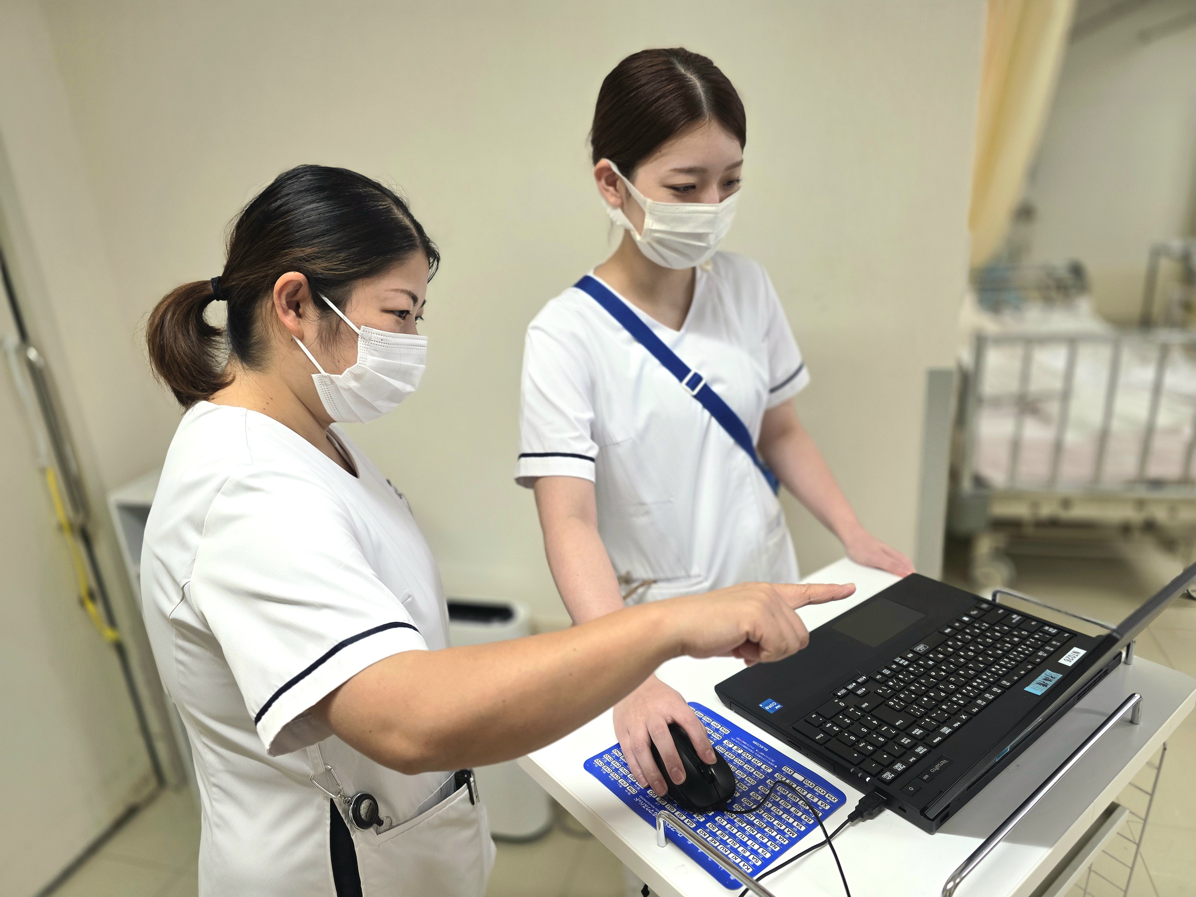 当院では看護学生の実習を積極的に受け入れています。実習生の学びの機会を大切にするだけでなく、実習生に教えるという行為を通じて、私たち看護師自身の成長にもつながると考えています。